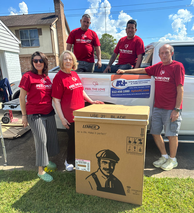 A-Plus Air Conditioning & Home Solutions is teaming up with Lennox International, Inc. to give back to a family of deserving disabled veterans in Kyle. On Tuesday, October 8, 2024, we will be installing an air conditioner/furnace free of charge for the Taylor family. The Lennox Feel the Love Campaign™ supports deserving families and individuals in our communities who are in need of newly installed HVAC systems that have hit a hard time and cannot afford a new system. As part of this program, Lennox will be donating a new Lennox HVAC system and A-Plus will donate the labor to install the new system at the Taylor family residence.